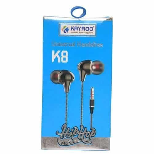 Add some style and stand out from the crowd with the Kayroo K8Â 3.5mm Wired in-Ear Earphone. The amazing sound-isolating technology enhances the reverb and is perfect for losing yourself in the magic of music.